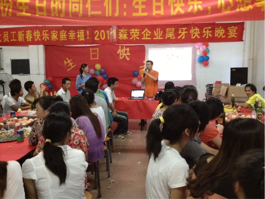 2012年06月29日在廣州森榮購物袋廠食堂舉行4到6月份生日的晚會。